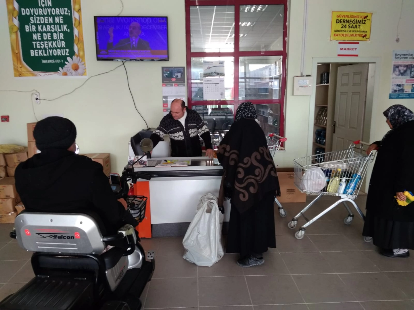 Gıda marketinde temel gıda ürünlerinin sürekliliğine ve çeşitliliğe özen gösterilir. Yapılan alışverişte ihtiyaç sahibi aileye 1 ay yetecek miktarda gıda ve temizlik malzemeleri sağlanmış olur.